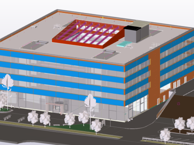 SWETCH team did the design of prefabricated concrete and steel structures for this building.