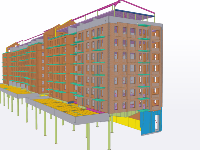 The building complex stands out with its decorative brick façade embedded in prefabricated reinforced concrete slabs. In order to achieve high accuracy in the production of the building, SWETCH modeled each decorative element in the Tekla Structures software, and their position was also shown in the blueprints of the building’s precast blocks.