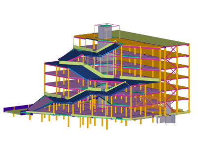This design sloped beams & cantilevered terraces in some areas required careful structural calculation to resist bending and shear loads. Also, loads in office and co-working spaces areas demanded that slabs accommodate live loads without excessive vibration.