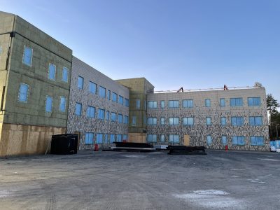 For schools with high aesthetic requirements—such as brick patterns, glazing, and color schemes—prefabricated panels must meet strict visual and dimensional criteria. Our engineers integrated the decorative brick façade cladding directly into the building’s 3D model to ensure accuracy and design compliance.