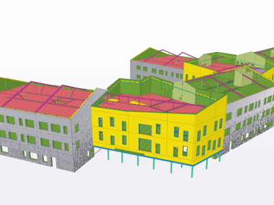 The project involved the design of prefabricated concrete and steel structures for an elementary school with a total floor area of 16 000 m².